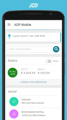 Met de applicatie van ADP krijgt u direct inzicht in uw financiële overzichten, waardoor het bekijken van loonstroken een fluitje van een cent wordt. Beheer uw werktijden moeiteloos door in en uit te klokken, en update uw urenstaten waar en wanneer het u uitkomt. Verlof aanvragen of uw verlofsaldi controleren is nog nooit zo eenvoudig geweest. Bovendien blijft u verbonden met uw collega's met slechts één tik en blijft u op de hoogte van het laatste bedrijfsnieuws, allemaal vanuit één intuïtieve interface die perfect integreert met de ADP-producten van uw werkgever. Houd er rekening mee dat de beschikbare functionaliteit afhankelijk is van de specifieke modules die uw werkgever via ADP aanbiedt. Voor eventuele vragen kunt u de veelgestelde vragen raadplegen in de instellingen van de app.
