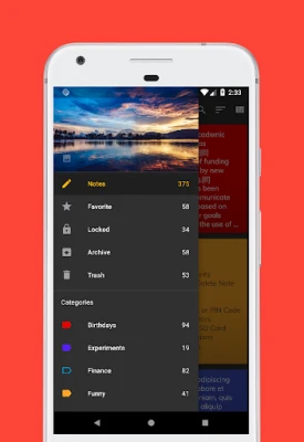 Begin met het stroomlijnen van uw gedachten en het organiseren van uw leven met deze uitzonderlijk ontworpen notitie-applicatie. Met een prachtige Material Design-interface biedt deze tool een intuïtieve en esthetische ervaring voor al uw aantekeningen. Leg niet alleen tekst vast, maar verrijk uw notities met foto's, video's en algemene bestandsbijlagen. Van snelle gedachten tot gedetailleerde projecten, beheer uw informatie moeiteloos: voeg toe, bewerk, archiveer, verplaats naar de prullenbak of verwijder met slechts een paar tikken. Categoriseer en markeer uw notities met levendige kleuren voor een ongeëvenaard overzicht.