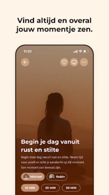 **Meditation Moments** is ontworpen om naadloos aan te sluiten bij jouw leven. Geniet dagelijks van een nieuwe, korte 'Daily Moment' en luister naar al je favoriete content, zelfs zonder internetverbinding. Gestructureerde collecties maken het eenvoudig om de perfecte meditatie of muziek voor jouw doel te vinden, terwijl dagelijkse herinneringen je helpen consistent te blijven. Houd je welzijn bij met een persoonlijke dagboekfunctie en ervaar de blijvende voordelen: een diepere, herstellende slaap, het loslaten van stress en angst, verbeterde concentratie en een groter gevoel van eigenliefde en algeheel welzijn. Een moment voor jezelf, voor iedereen.