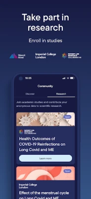 De inzichten die Visible verzamelt, worden omgezet in duidelijke, maandelijkse en langetermijn gezondheidsrapporten. Deze rapporten bieden een compleet overzicht van je trends en voortgang, ideaal om te delen met je arts voor beter geïnformeerde gesprekken. Voor degenen die hun begrip verder willen verdiepen, kan een koppeling met een draagbare armband de ervaring transformeren. Dit biedt realtime meldingen over tempobeheer, PacePoints en een continu energiebudget voor de hele dag. Bovendien biedt Visible de unieke mogelijkheid om deel te nemen aan onderzoek met vooraanstaande wetenschappers, waardoor je een waardevolle bijdrage levert aan de wetenschap van onzichtbare ziekten.